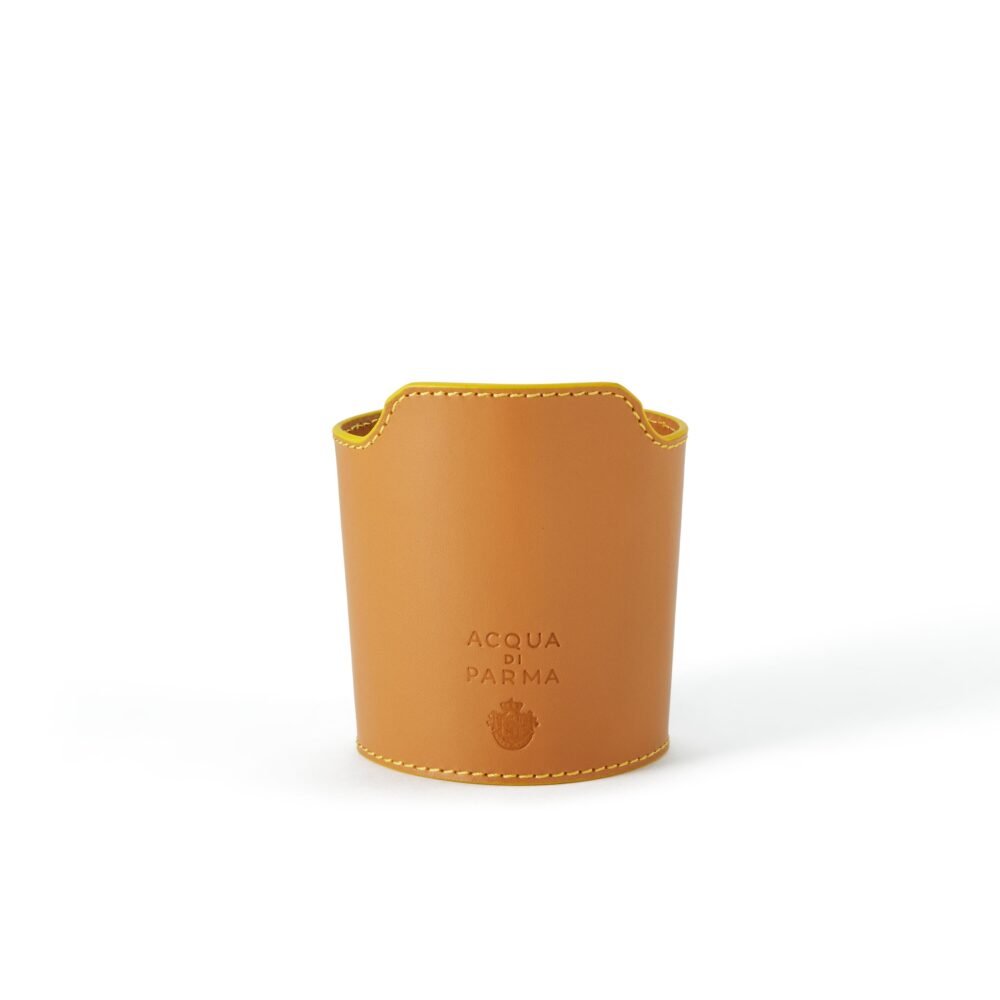 テイクアウト用カプチーノカップのスリーブから遊び心を得たこのレザーカップホルダーは、アクア ディ パルマの200gキャンドルに洗練された個性を加えるためにデザインされたアイテムです。 キャンドルを一つのスタイリッシュなインテリアオブジェへと変えるアクセサリー。イタリアの熟練した職人によってすべて手作業で作られており、タンカラーのカーフスキンに、アクア ディ パルマを象徴するイエローのコントラストステッチが施されています。製作は、革を正確に裁断する工程から始まり、柔軟性を高めるための繊細な薄革加工を経て進みます。形状を整え補強した後、エッジとステッチは丁寧に手仕上げされます。その後、アクア ディ パルマのロゴと「Made in Italy」の刻印がホットスタンピングで施されます。 液体、クリーム、オイル、化粧品との接触、直射日光の長時間照射、研磨性のある表面との摩擦は避けてください。 |