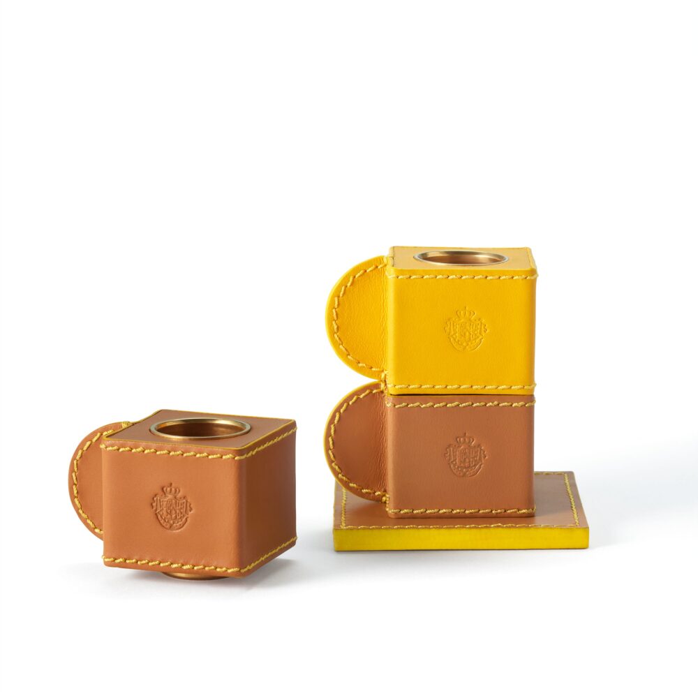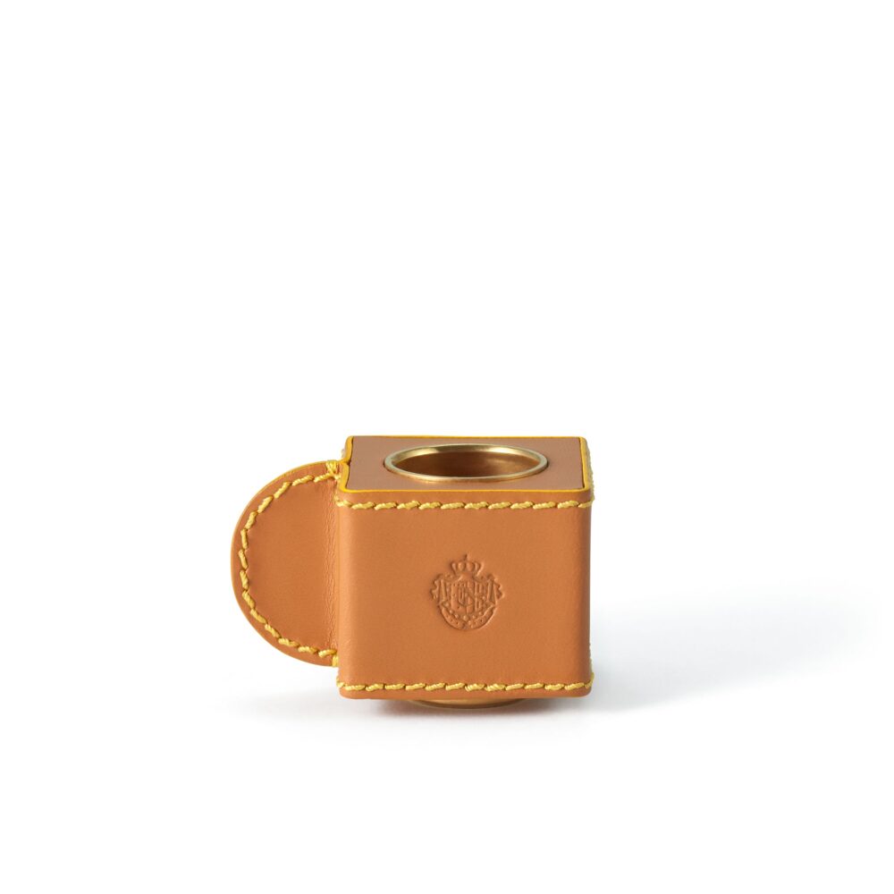 タンカラーの積み重ね可能なレザーモジュール。コロニア タッツィーナ ベースと組み合わせて、彫刻的なスティックキャンドルのトーテムを自由にカスタマイズできます。 イタリアで愛される小さなエスプレッソカップ “tazzina” の形から着想を得たこのモジュールは、アクア ディ パルマ のスティックキャンドルを引き立てながら、キャンドルディスプレイの高さや構成を遊び心ある方法でパーソナライズできるデザインです。イタリアで手作りされており、まず熟練のパルマの職人が高品質の木材でしっかりとした木製の芯材を制作。各ブロックは職人技で形作られ、強度とバランスを確保しています。 キャンドルをしっかり支えるため、上部にはサイズに合わせて旋盤加工された真鍮製インサートが組み込まれ、底部の真鍮製ディスクにより、モジュールを積み重ねても安定性が保たれます。外側はタンカラーのカーフスキンレザーで包まれ、アクア ディ パルマ を象徴するイエローの糸で手縫いされています。前面にはメゾンのエンブレム、底面には “Made in Italy” の刻印がホットスタンプされています。 液体、クリーム、オイル、化粧品、長時間の直射日光、研磨面との接触は避けてください。必要な場合は、柔らかく湿らせた布で優しく軽く叩くようにお手入れしてください。 |